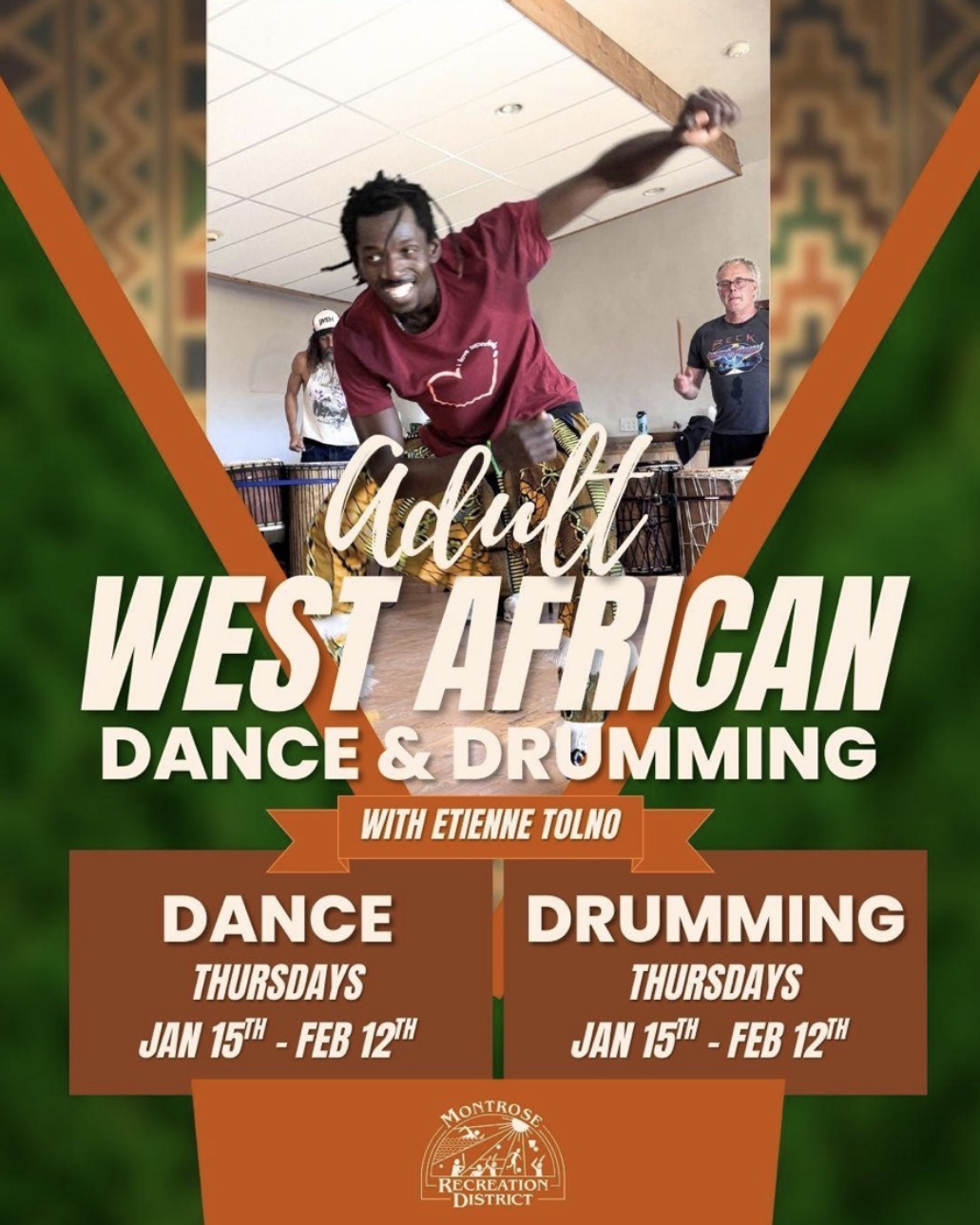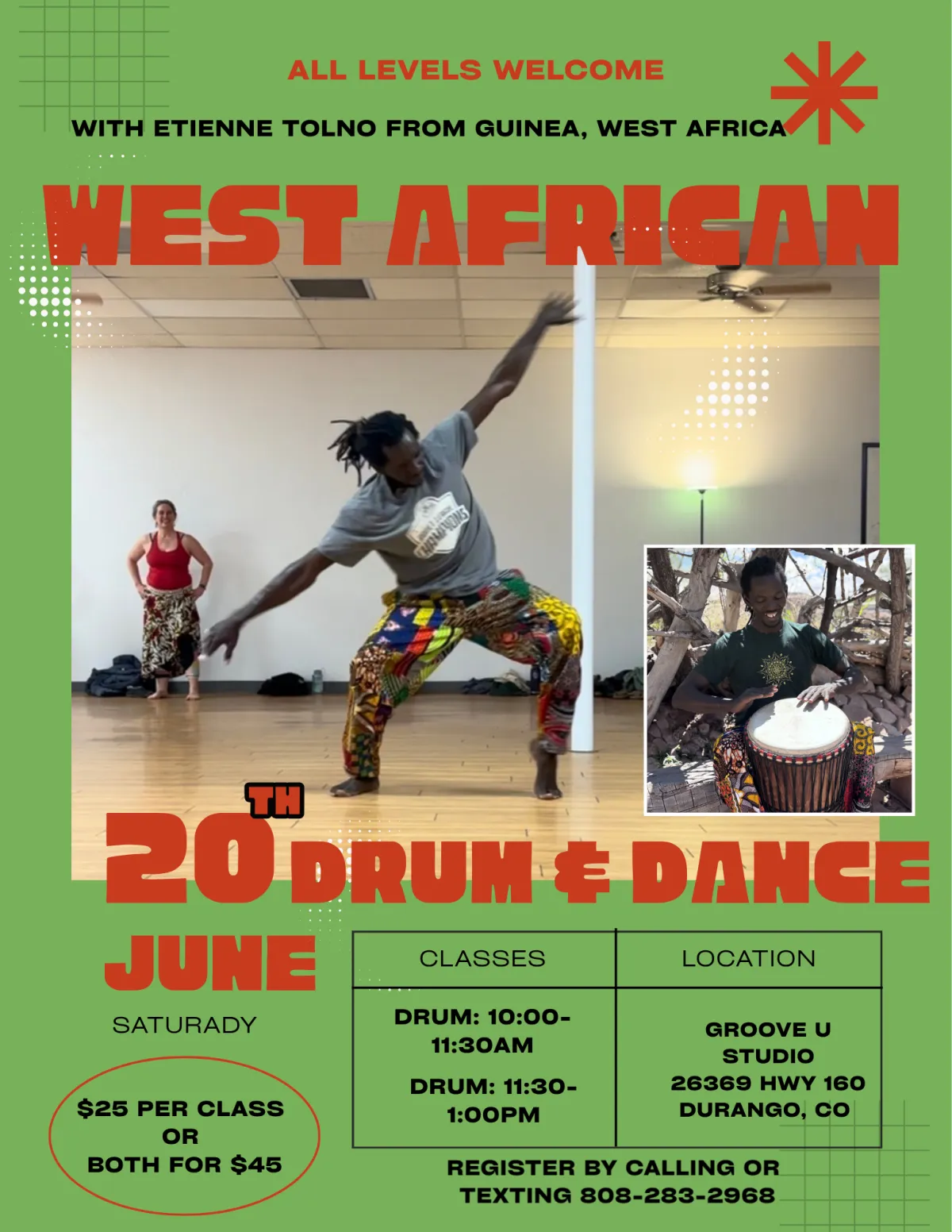 group lessons from him. Etienne challenges every level of drummer and dancer. He builds community through his lessons teaching about the culture as he goes. He is the root, the authentic teacher of drum and dance. "